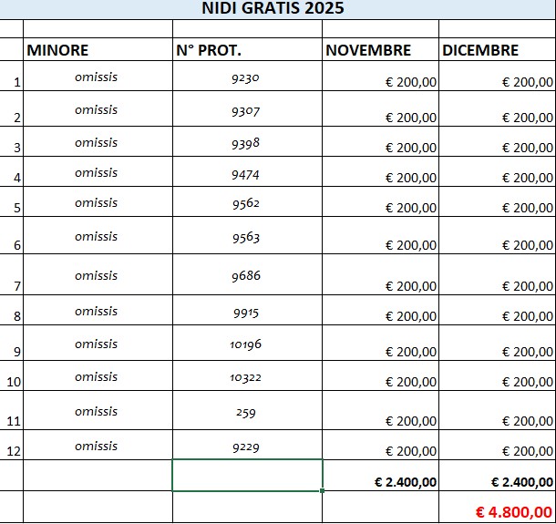 "NIDI GRATIS": Approvazione Graduatoria Definitiva e Concessione contributo Annualità 2025. Anno scolastico 2025/2026.